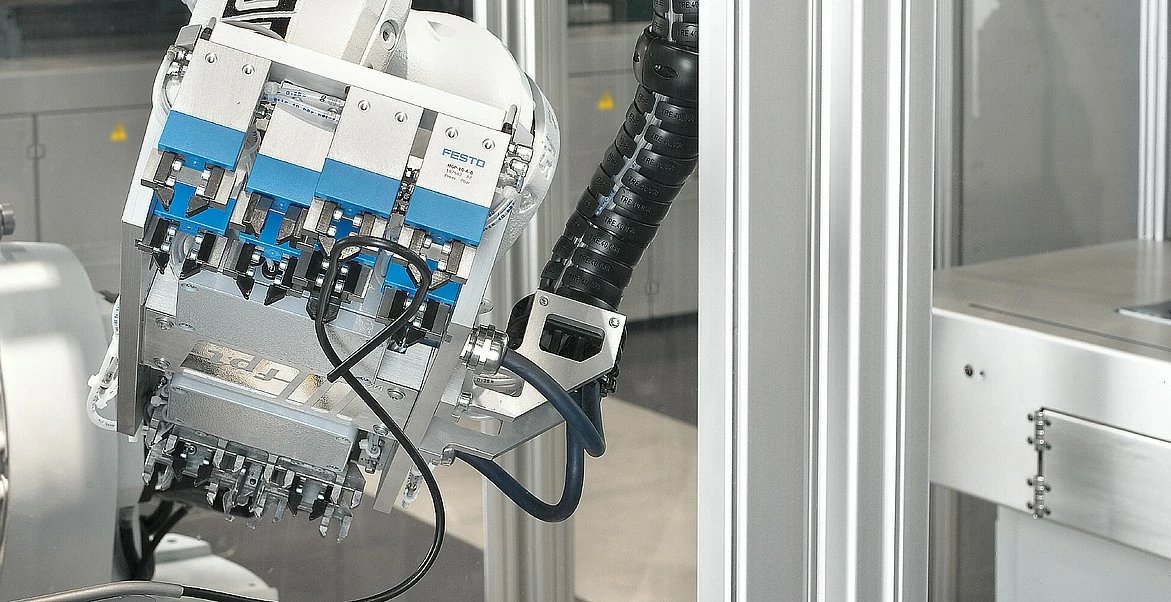 将灵活的六轴机械手集成到自动化系统中,以完成复杂的任务。例如,可以分别将预制的柔性产品,插入不同位置的多个型腔中。